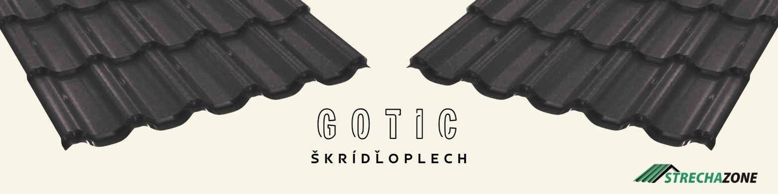 Škridla GOTIC je vyrobená z pozinkovaného (Z225-Z275) profilovaného oceľového plechu s hrúbkou v rozpätí 0,45 a 0,60 mm, pokrytého jednou vrstvou náteru v lesklom alebo matnom...